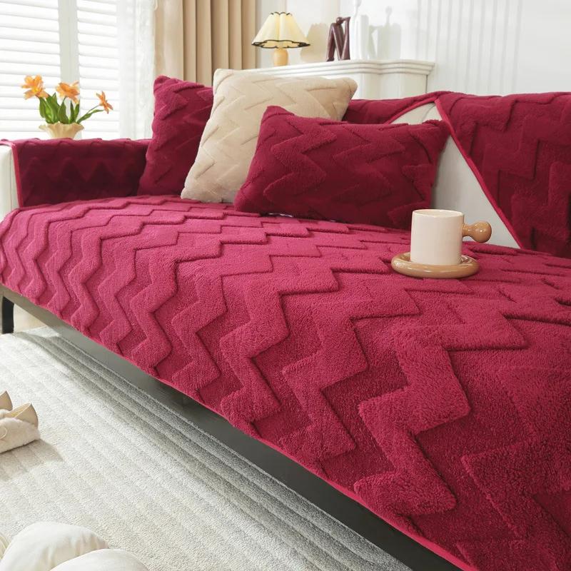 Зимние теплые плюшевые чехлы на диван, жаккардовый коврик для дивана в стиле легкой роскоши, нескользящее пыленепроницаемое полотенце-накидка на диван, чехлы для гостиной дома