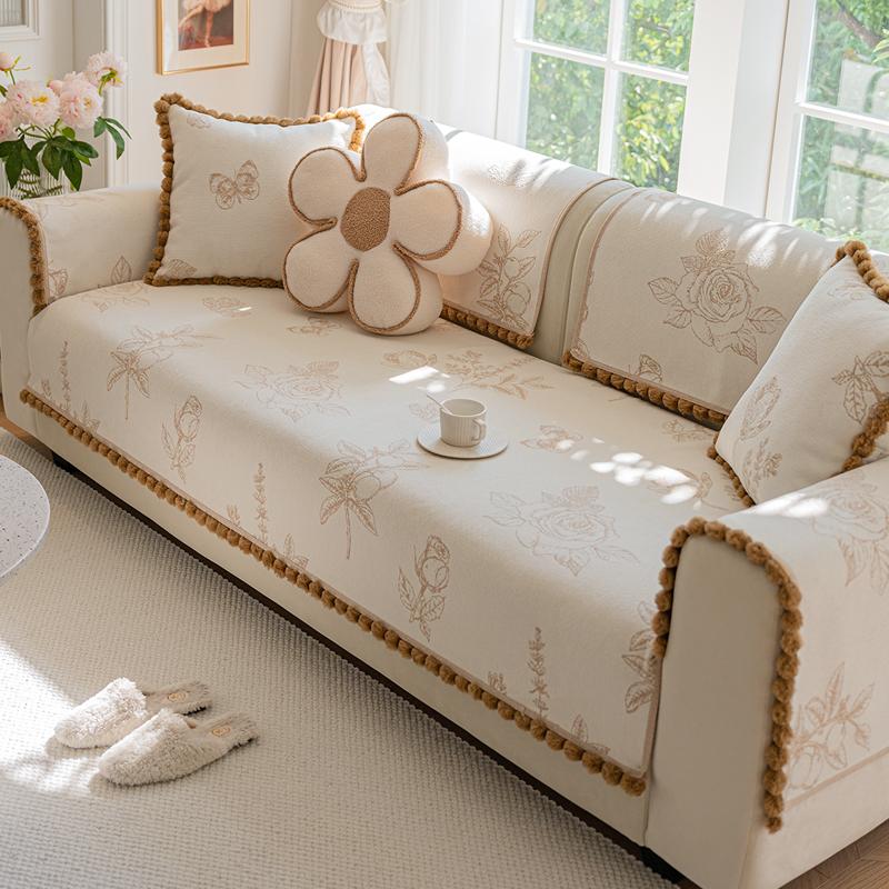 Нескользящий чехол для дивана из синели с цветочным принтом, универсальный чехол на четыре сезона, подушка для дивана, полотенце для дивана, современный защитный чехол для домашней мебели