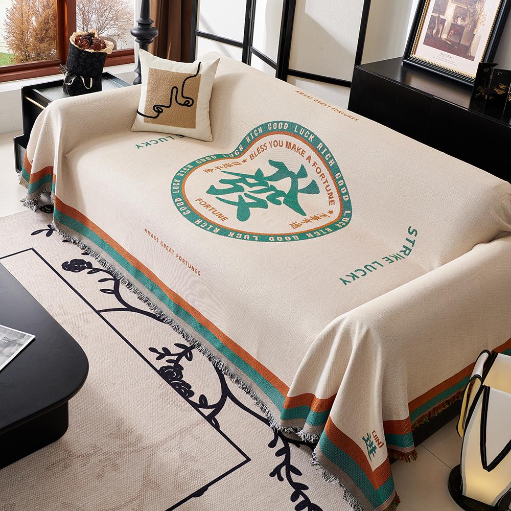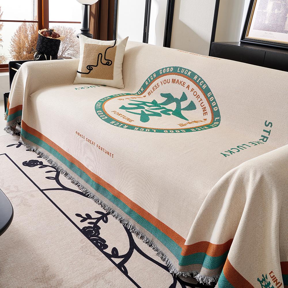 Чехол для дивана в китайском стиле из хлопковой смеси, двуспальная кровать, одеяло с кисточками, универсальный декоративный