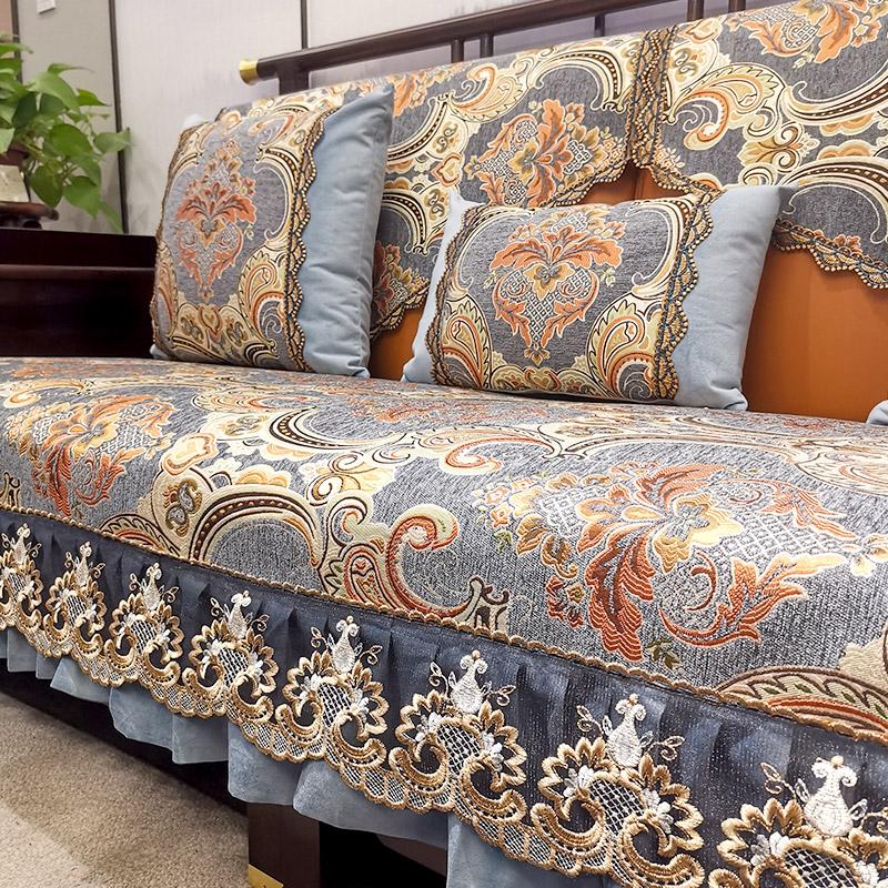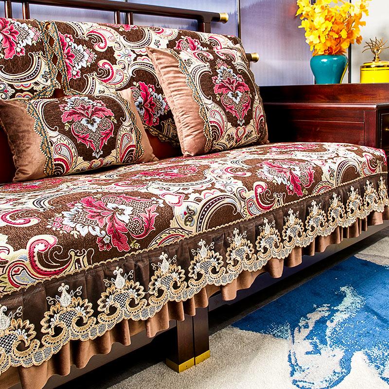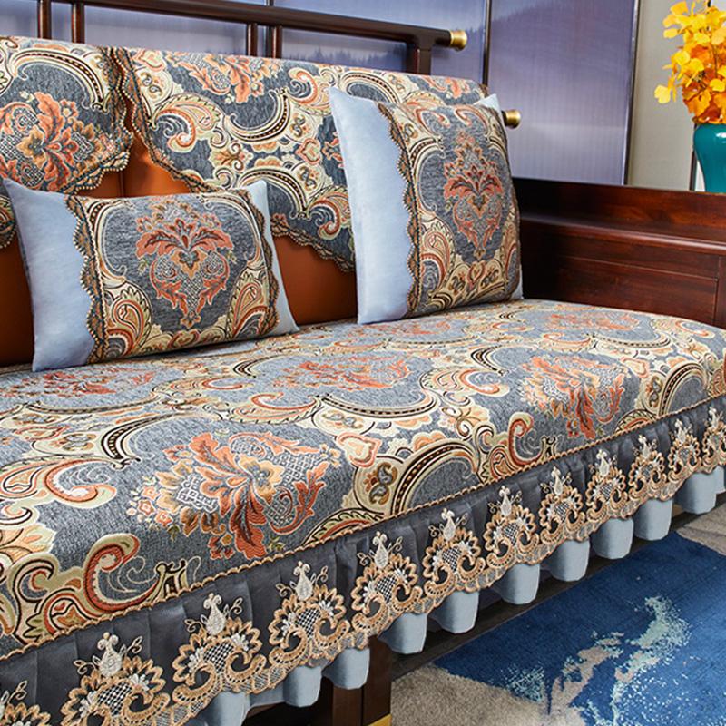 Чехол для дивана с европейской вышивкой, Нескользящий чехол для дивана из синели, домашний декор, четырехсезонные универсальные чехлы для диванов, защита для подушек