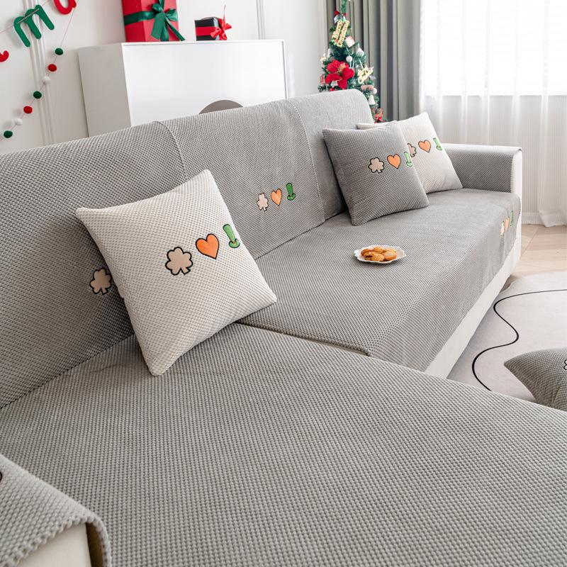 Зимний утепленный чехол для дивана, однотонная тканая подушка для дивана, современный вельветовый чехол для дивана, нескользящий вышитый коврик для дивана с изображением дерева любви