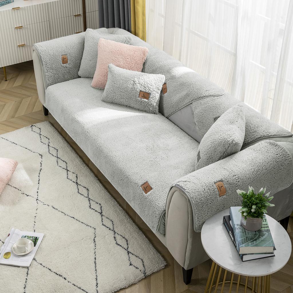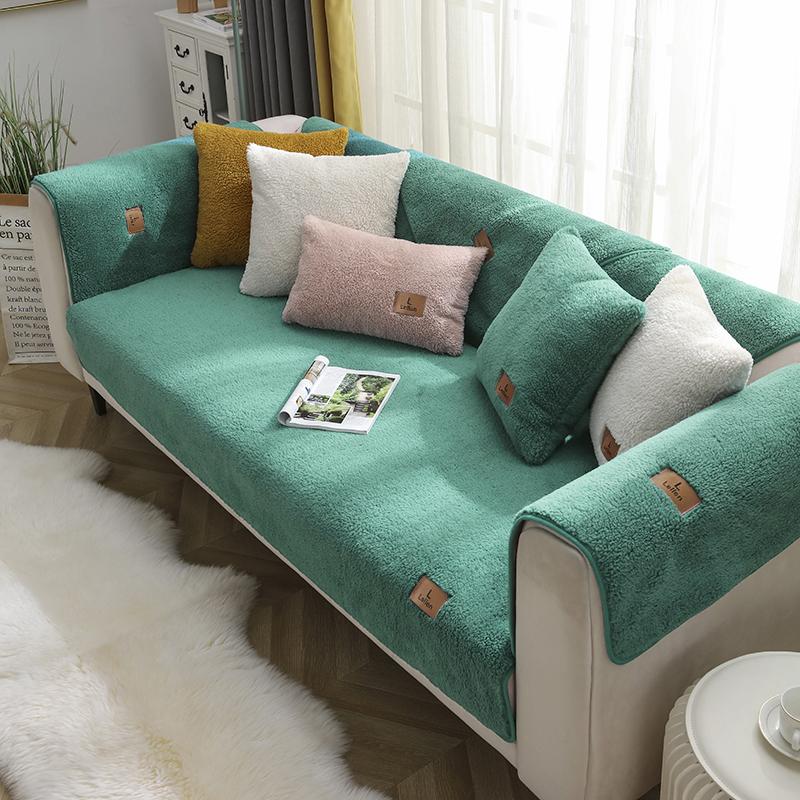 Зимний чехол на диван из овечьей шерсти, утолщенное диванное полотенце, противоскользящие однотонные чехлы для дивана для гостиной, утолщенный плюшевый, мягкий и гладкий