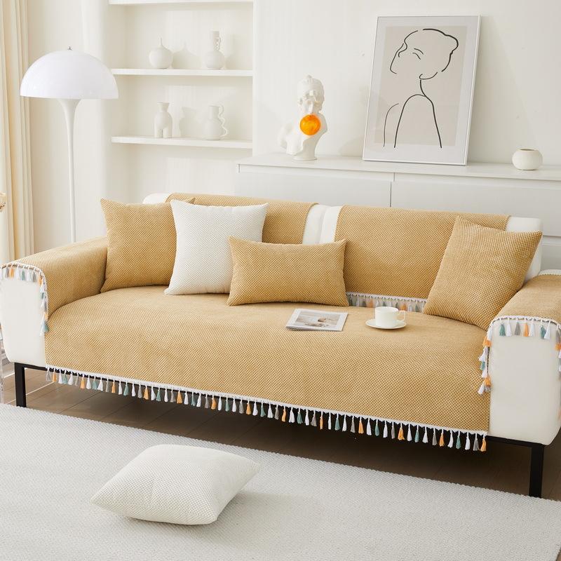 Вельветовая диванная подушка с кисточками, современная простая высококачественная нескользящая диванная подушка, однотонная мягкая всесезонная универсальная чехол для дивана