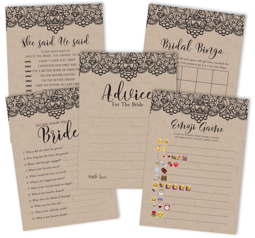 Набор игр для девичника Inkdotpot Victorian Black Lace Kraft, набор из 5 штук (Мероприятия для 50 гостей) Веселый набор игр для девичника