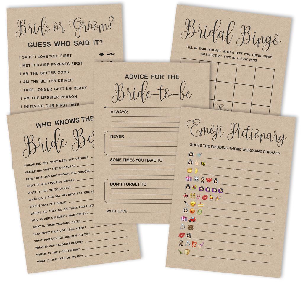 Набор из 5 игр для девичника в деревенском стиле из крафт-бумаги Inkdotpot (Мероприятия для 50 гостей) Веселый набор игр для девичника