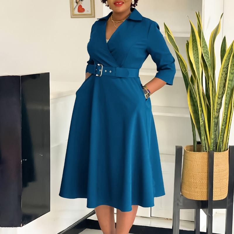 Женская осенняя модная юбка с лацканами, однотонное платье с темпераментом — купить товар онлайн с бесплатной доставкой по всему миру!