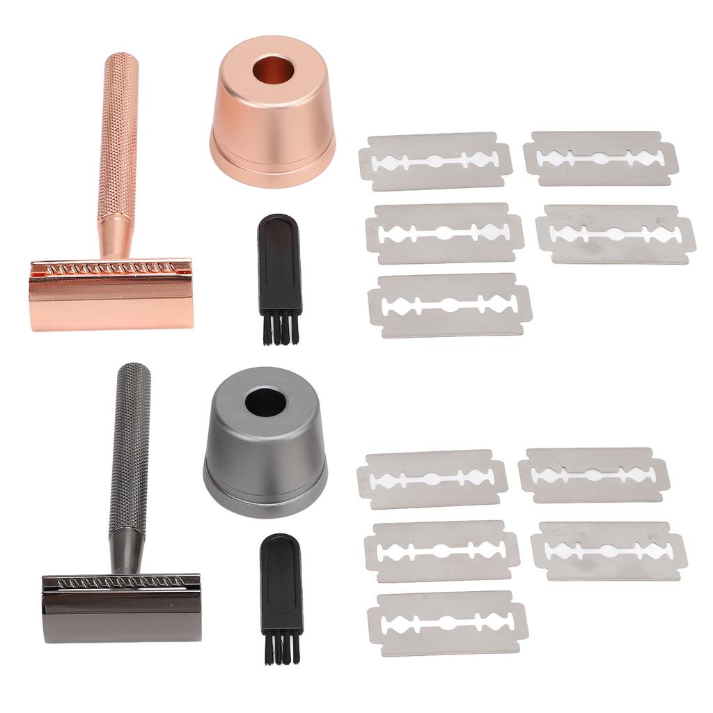 Набор для бритья Double Edge с подставкой для лезвий Precision Grooming Metal Non Slip Handle Retro Manual Shavin