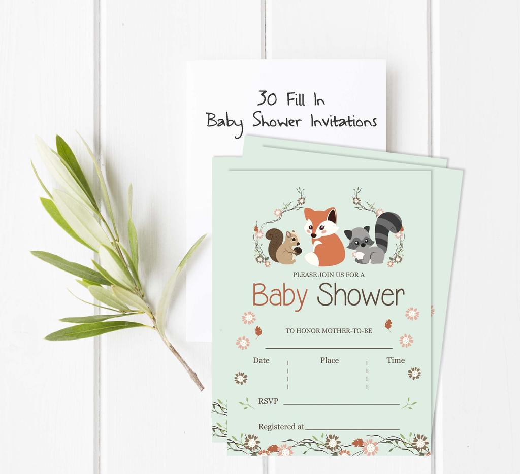 Inkdotpot 30 пригласительных открыток на вечеринку в честь рождения ребенка, заполненных в стиле «Животные», «Гендерно-нейтральные», «Пустые приглашения»