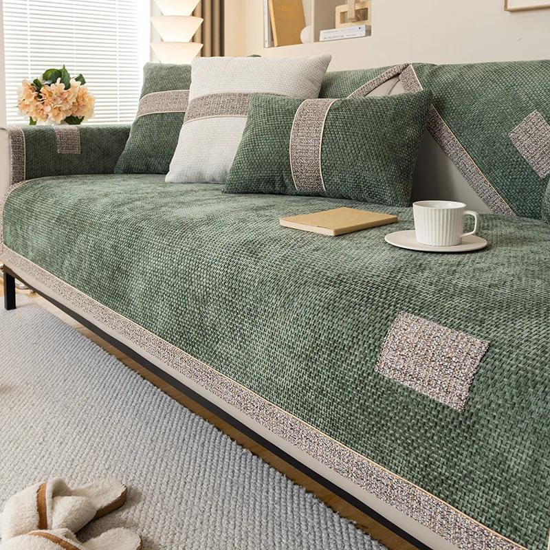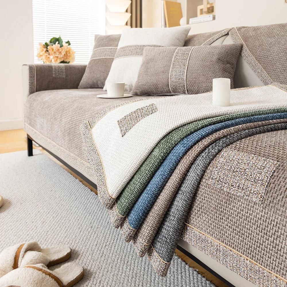 Чехол для дивана из синели для гостиной, всесезонный универсальный коврик для дивана, противоскользящий однотонный чехол для дивана с вышивкой, тканый край, коврик для дивана