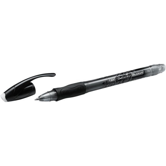 BIC Pack de Stylo roller encre gel effaçable + 2 Recharges Gelocity Illusion - Noir