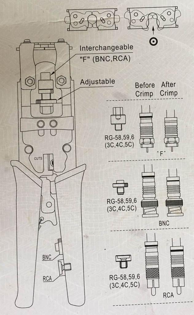 Коаксиальный кабель NUZAMAS, многофункциональный коаксиальный компрессионный разъем, инструмент для компрессии RG58 RG59 RG6 F BNC RCA, инструмент для регулировки, кусачки для обжима проводов