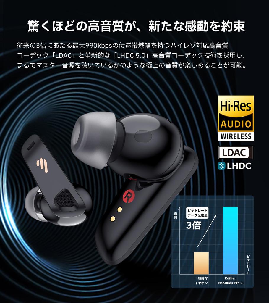 Удивительно высокое качество звука: Сертифицирован как «Hi-Res Wireless» и совместим со стандартными в отрасли технологиями высококачественных аудиокодеков высокого разрешения «LDAC» и «LHDC».. Благодаря сочетанию высокопроизводительного сбалансированного арматурного драйвера, который превосходно воспроизводит тонкие и плавные средние и высокие частоты, и многослойного диафрагменного динамического драйвера, который специализируется на мощных басах, он производит прекрасный звук как с глубокими ритмами, так и с прозрачными мелодиями.. Это возможно.