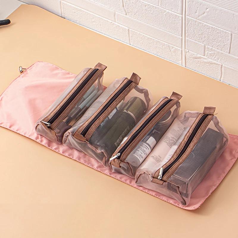 Четыре в одном, складная дорожная косметичка большой вместимости, портативная дорожная косметичка-органайзер, сумка-сумка для скрученной коллекции, подвесная косметичка