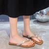 Женские тапочки на плоской подошве с застежкой на носок, женские роскошные шлепанцы с кристаллами, сандалии, лето 2024, модное платье, пляжные уличные шлепанцы, Zapatillas