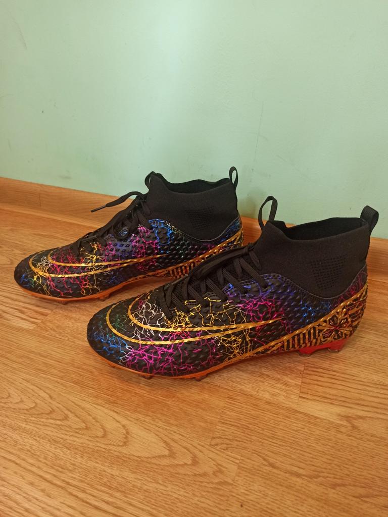 Качественные футбольные бутсы. Бутсы предоставлены в 3 цветах Размерный ряд от EU 33 до EU 46 На широкую стопу 27 см заказала размер EU 45 см подошли отлично. Подошва изготовлена из ТПУ Верх из искусственной кожи Вместо язычка и поверху бутс идёт трикотажная резинка Мягкий верх футбольных бутсов из искусственной кожи обеспечивает комфорт и долговечность. Футбольные кроссовки с высоким верхом обеспечивают достаточную поддержку лодышки и помогают защитить лодышку от травм. Такие бутсы подойдут для любого случая и любой компании : бег, соревнования, пешие прогулки, резиновая игровая площадка, искусственный грунт. Пришли хорошо упакованы без постороннего запаха. Бутсы зятю понравились, он играет в футбол. К покупке однозначно рекомендую 💯