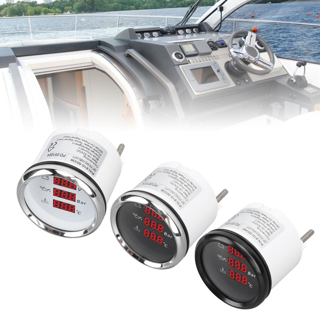 4. Безопасное соединение и универсальность: Вольтметр-указатель температуры воды и давления масла имеет конструкцию зажима, а соединение надежное, поэтому указатель может работать даже в условиях сильной вибрации, подходит для кораблей, рыболовных лодок, яхт, подвесных моторов и других водных транспортных средств.