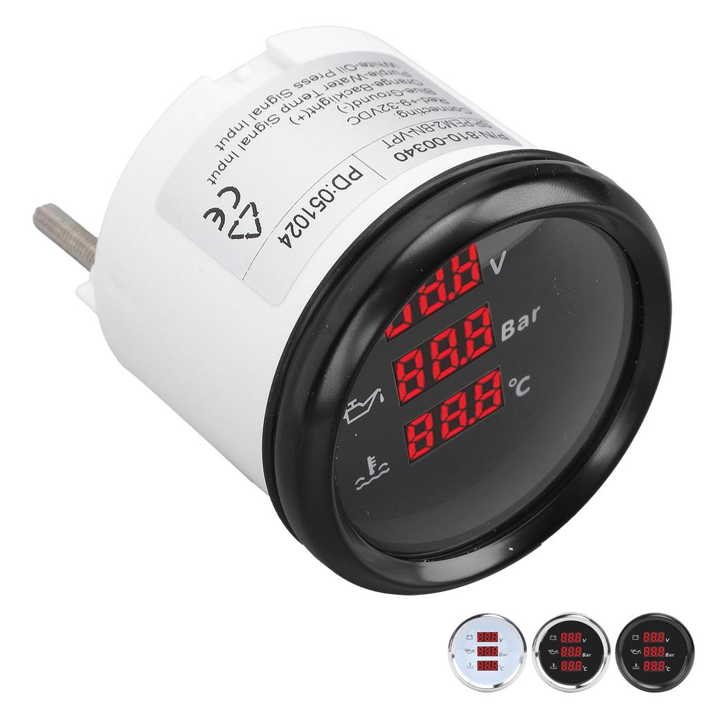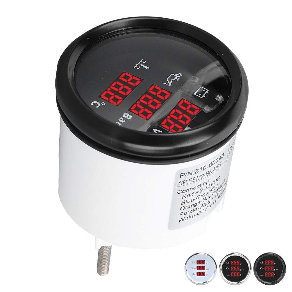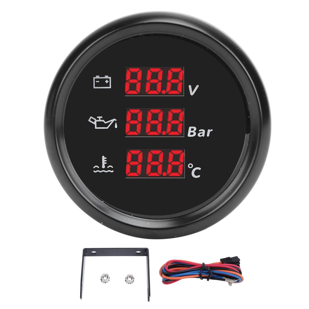 1. Легко читаемый и многофункциональный: Этот измеритель напряжения, давления масла и температуры воды значительно повышает эффективность считывания данных.. Пользователям больше не нужно переключаться между различными датчиками, достаточно одного взгляда, чтобы понять данные о напряжении, давлении масла и температуре воды, что делает использование более удобным.