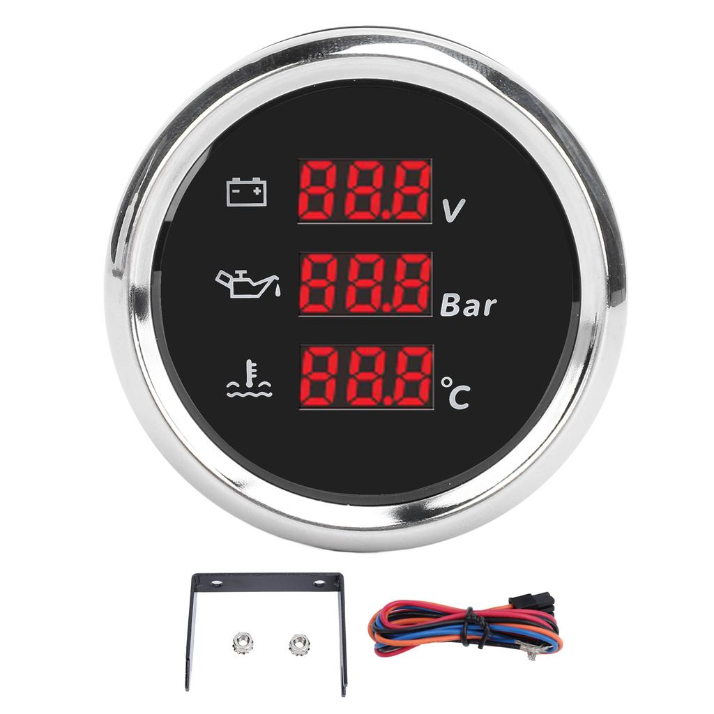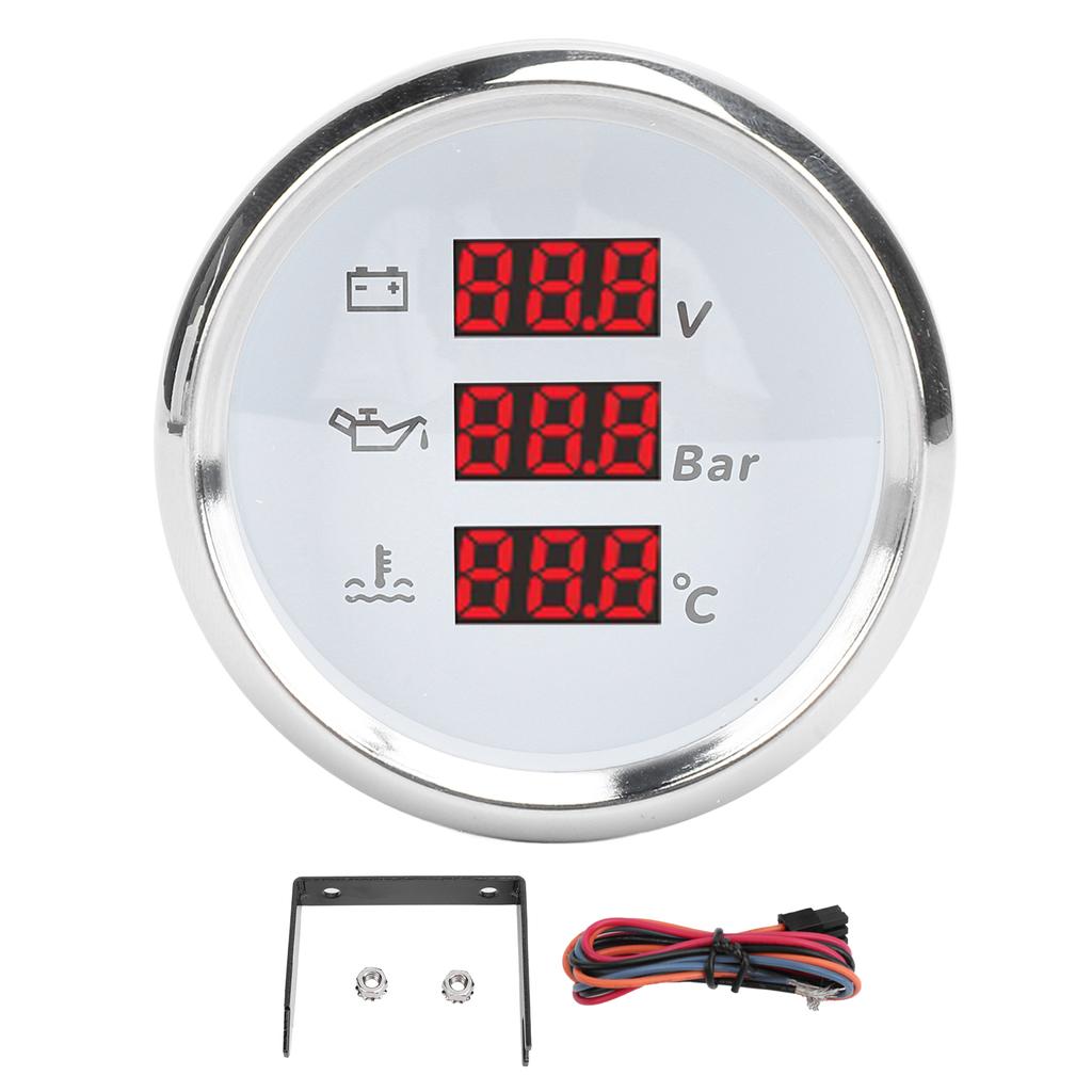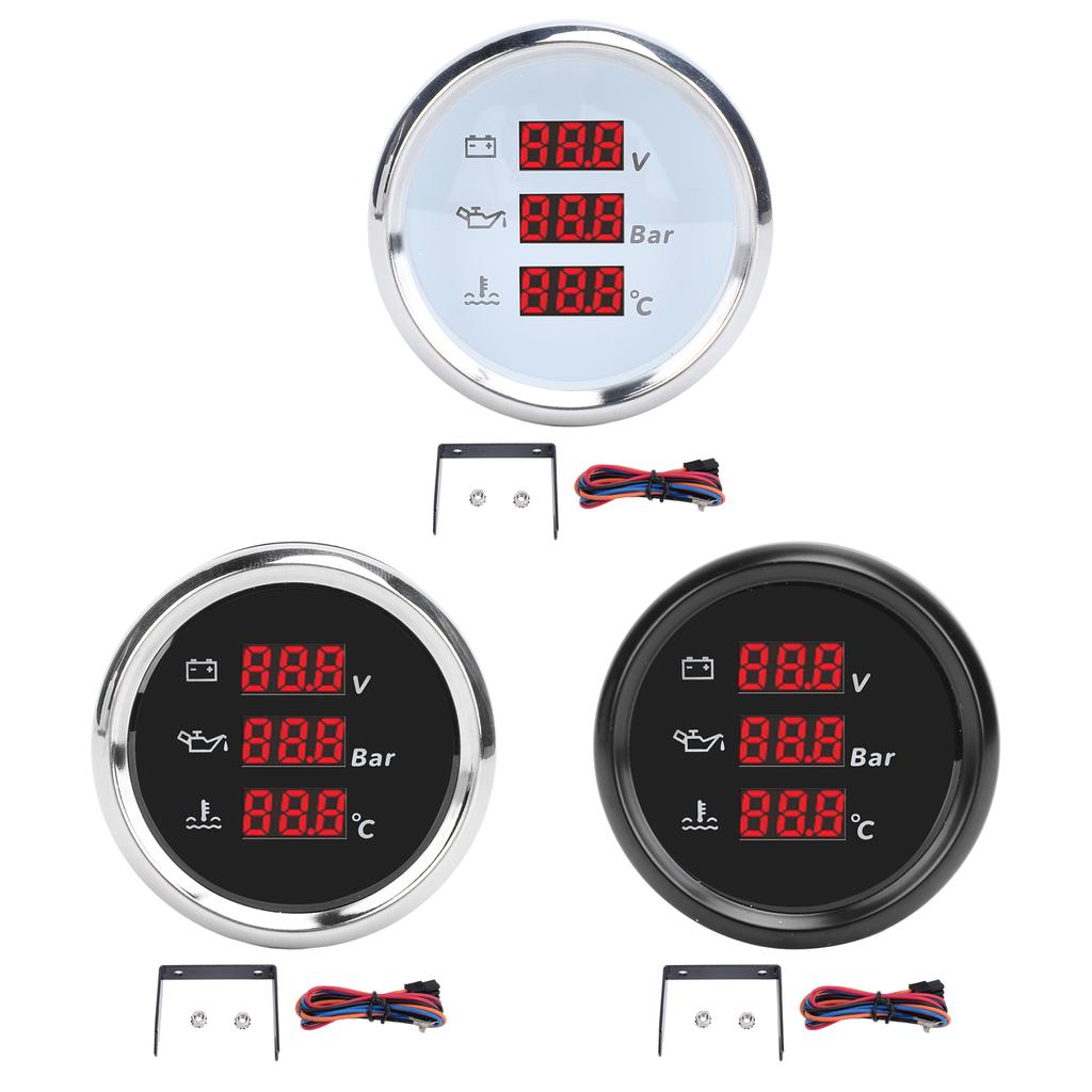 1. Легко читаемый и многофункциональный: Этот измеритель напряжения, давления масла и температуры воды значительно повышает эффективность считывания данных.. Пользователям больше не нужно переключаться между различными датчиками, достаточно одного взгляда, чтобы понять данные о напряжении, давлении масла и температуре воды, что делает использование более удобным.