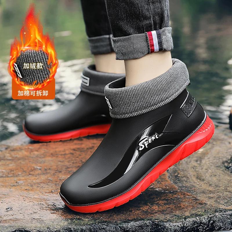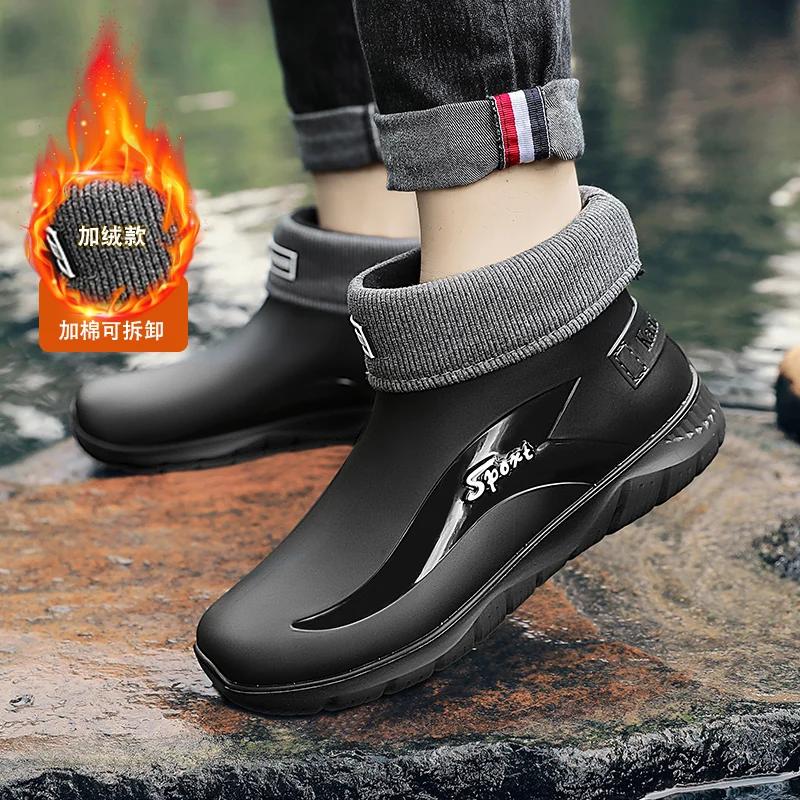 Мужские резиновые сапоги с высоким верхом, водонепроницаемая обувь, нескользящие, водонепроницаемые, рабочие, кухонные, строительные, износостойкие и мягкие сапоги