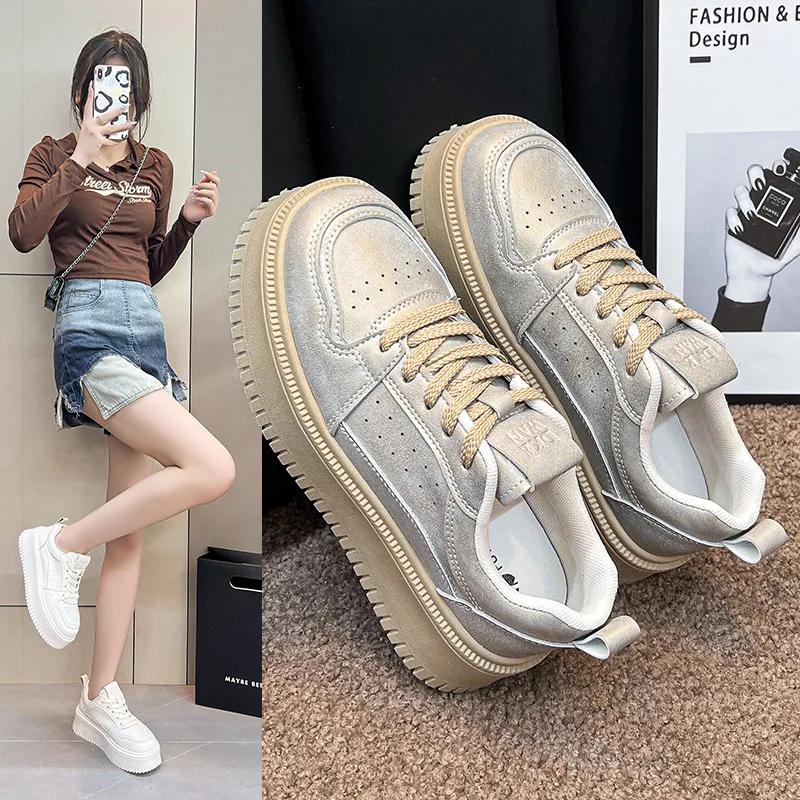 2024 Лидер продаж, белые кроссовки на платформе, маленькие белые туфли, дышащие, с круглым носком, на шнуровке, кроссовки Bread Daddy — купить товар онлайн с бесплатной доставкой по всему миру!