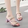 2024 блестящие золотые серебряные женские босоножки летние хрустальные туфли на высоком каблуке для вечеринок женские удобные шлепанцы на толстом каблуке Sandalias Mujer
