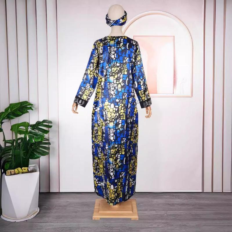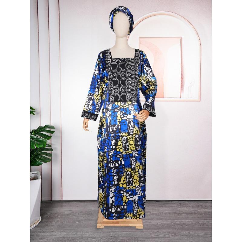 Платье большого размера для женщин с принтом Hot Drill Color с платком на голове