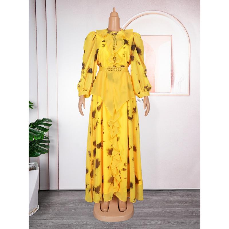 Новое винтажное длинное платье с оборками и принтом для женщин больших размеров