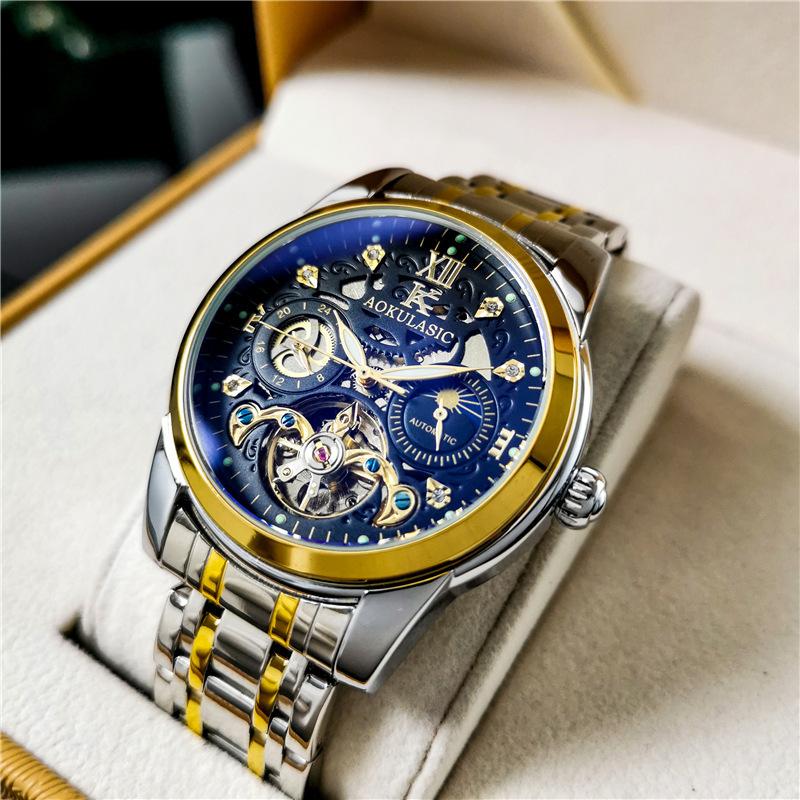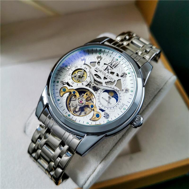 Выдолбленные большие маховики автоматические механические часы мужские часы водонепроницаемые светящиеся фазы Луны многофункциональные часы мужские