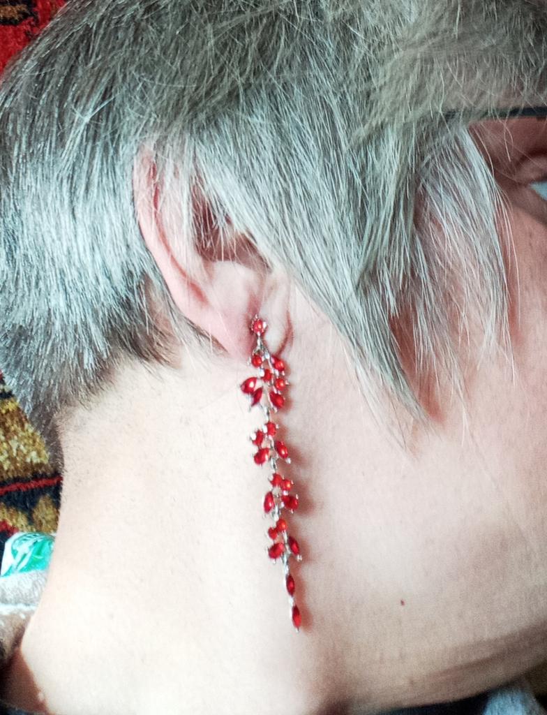 Посылка шла около полутора месяцев, как и было заявлено. Серьги мне очень понравились, стразы на швензах все на месте, замочек ровный, нити очень яркие, красивые, снова очень лёгкие серьги, как я люблю, от таких не устают уши. Смотрятся очень нарядно, я очень довольна покупкой. Буду надевать их с красной шляпой, которую заказала на джуме, она ещё в пути. Что очень важно нет аллергической реакции на металл, хотя из бижутерии я мало что могу подобрать, т.к. уши сразу воспаляются, но тут всё отлично!!! Из недостатков: некоторые нити были неровными, но эту проблему я легко устранила, просто подровняла их парикмахерскими ножницами. Почему именно парикмахерскими? Простые ножницы мнут нити, т.к. они очень прочные. Теперь всё идеально, можно носить с удовольствием!!! К покупке рекомендую!