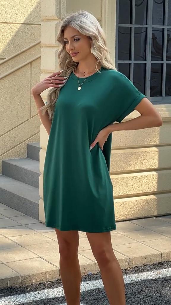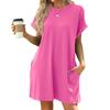 YYFS Женская мода лето весна однотонный принт с коротким рукавом и круглым вырезом свободная талия повседневные платья