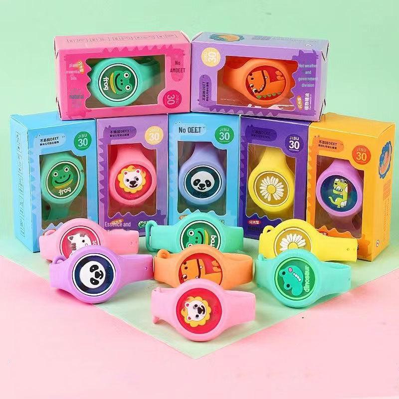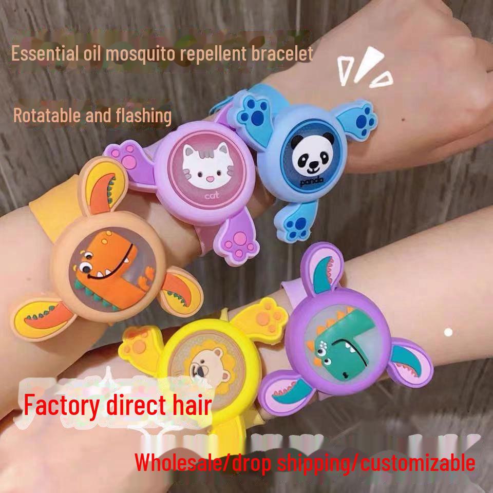 Детский браслет от комаров с мультяшным принтом, мигающий - портативный, против укусов, вращающийся, светящийся
