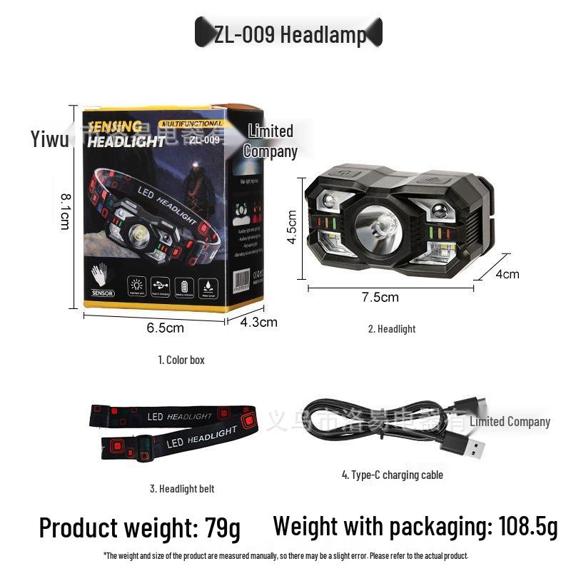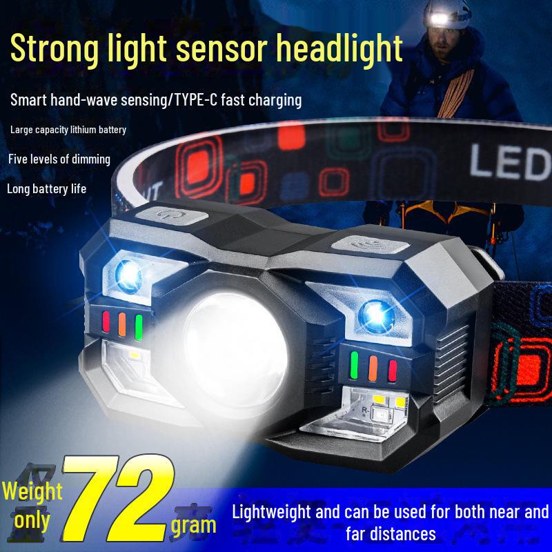 «Портативный светодиодный налобный фонарь: Многофункциональный, легкий, долговечный для активного отдыха, работы и рыбалки.