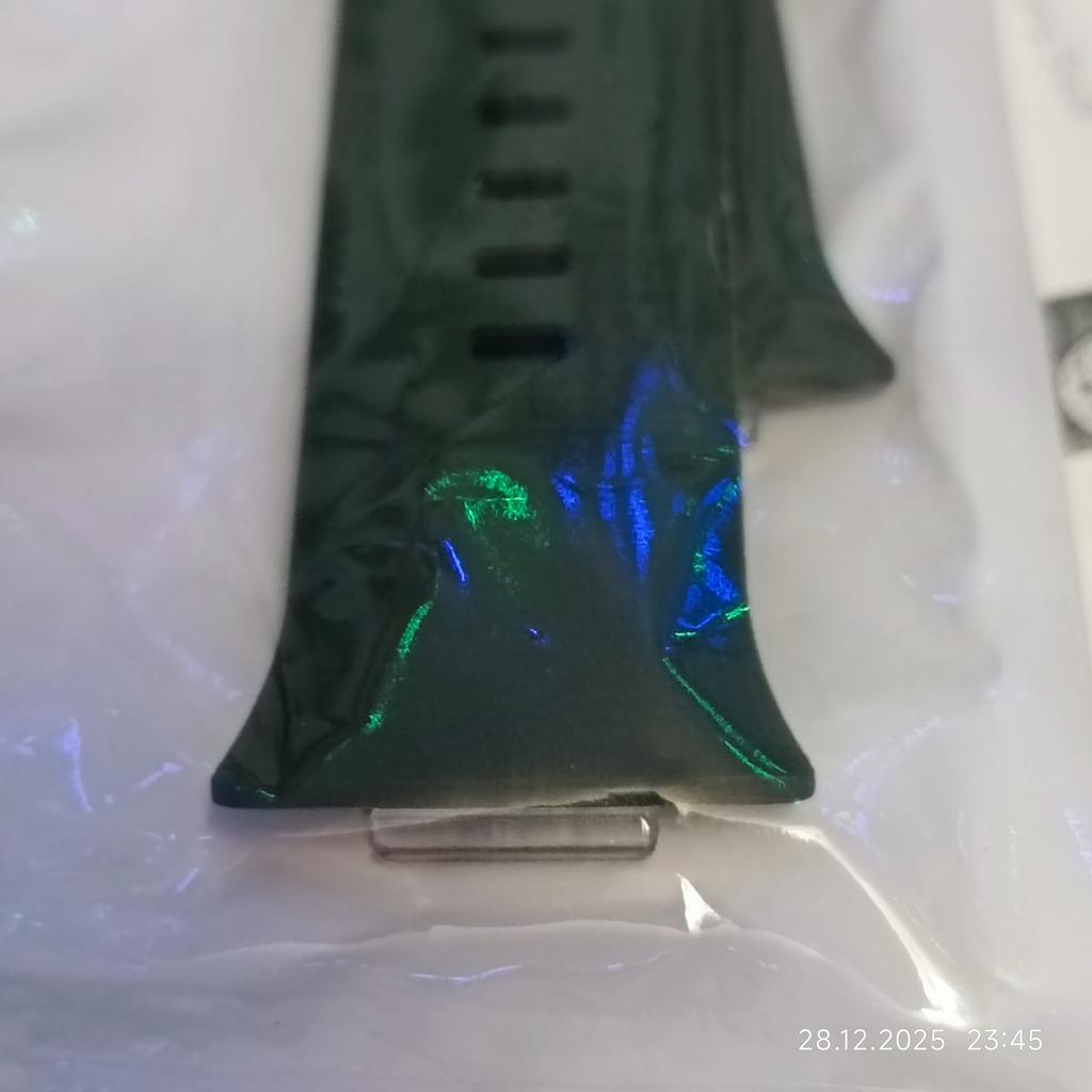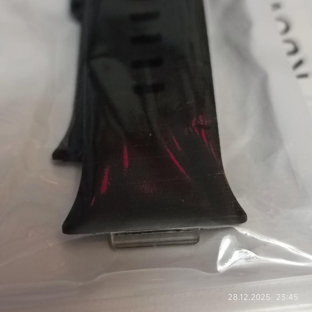 Материал силикон, матовый, шероховатый. В общем, не такой, как родной ремешок.