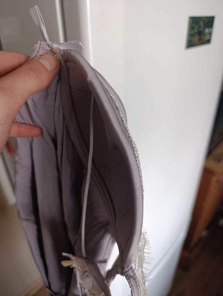 Халат идеальный, сорочка прекрасна, но так сильно маломерит сорочка... Я не понимаю, для чего указывать в размерной сетке, что размер м подойдет на ог 118 (у меня 110, брала с запасом, на всякий случай), если по факту он максимум на второй размер, чашечки почти плоские, но деньги возвращать не буду, так как халат точно оставлю Жаль, что китайцы сомневаются в существовании большой груди, ведь сорочка и правда очень красивая( Для сравнения приложила чашечку, которая реально подходит на 110, даже не 118.