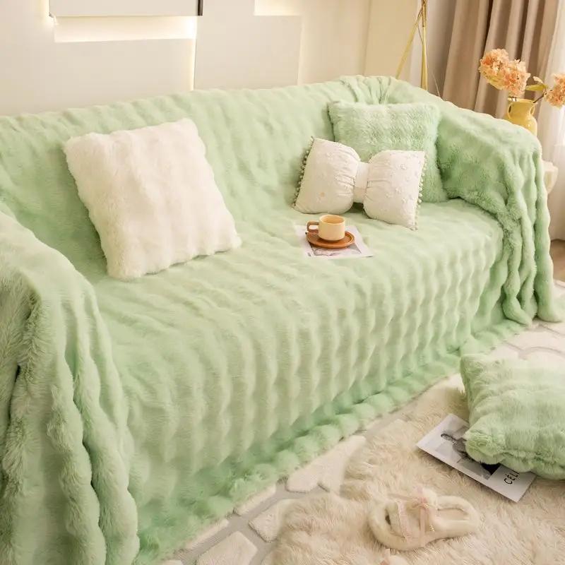 Зеленый мягкий нескользящий плюшевый диван, полное покрытие, плюшевая толстая теплая универсальная подушка, однотонный цвет, 2-3-местный диван, одеяло, коврик, домашний декор