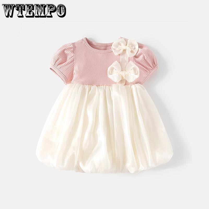 Летнее платье для девочек Платье с бантом для малышей для девочек Летнее детское платье принцессы из газа в иностранном стиле