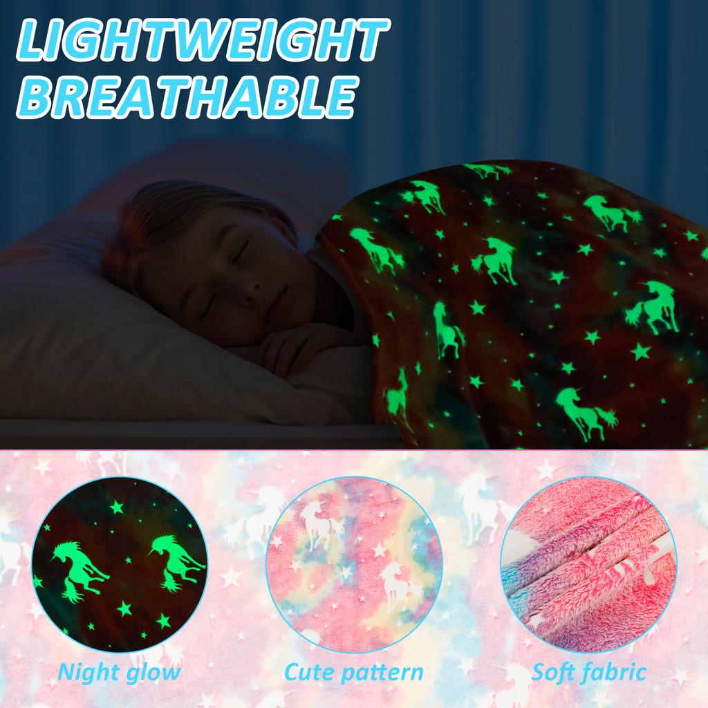 Светящееся в темноте одеяло с рисунком животных, мягкое, уютное, детское одеяло, красочное, для детей, единороги, игрушки для девочек и мальчиков, подарки