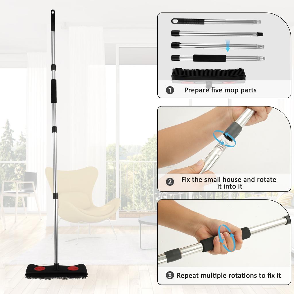 Резиновая щетка для ковров, грабли для домашних животных, собак, кошек, удаление катышков, щетка для мытья полов, скребок с регулируемой ручкой, мягкая щетка для ковров