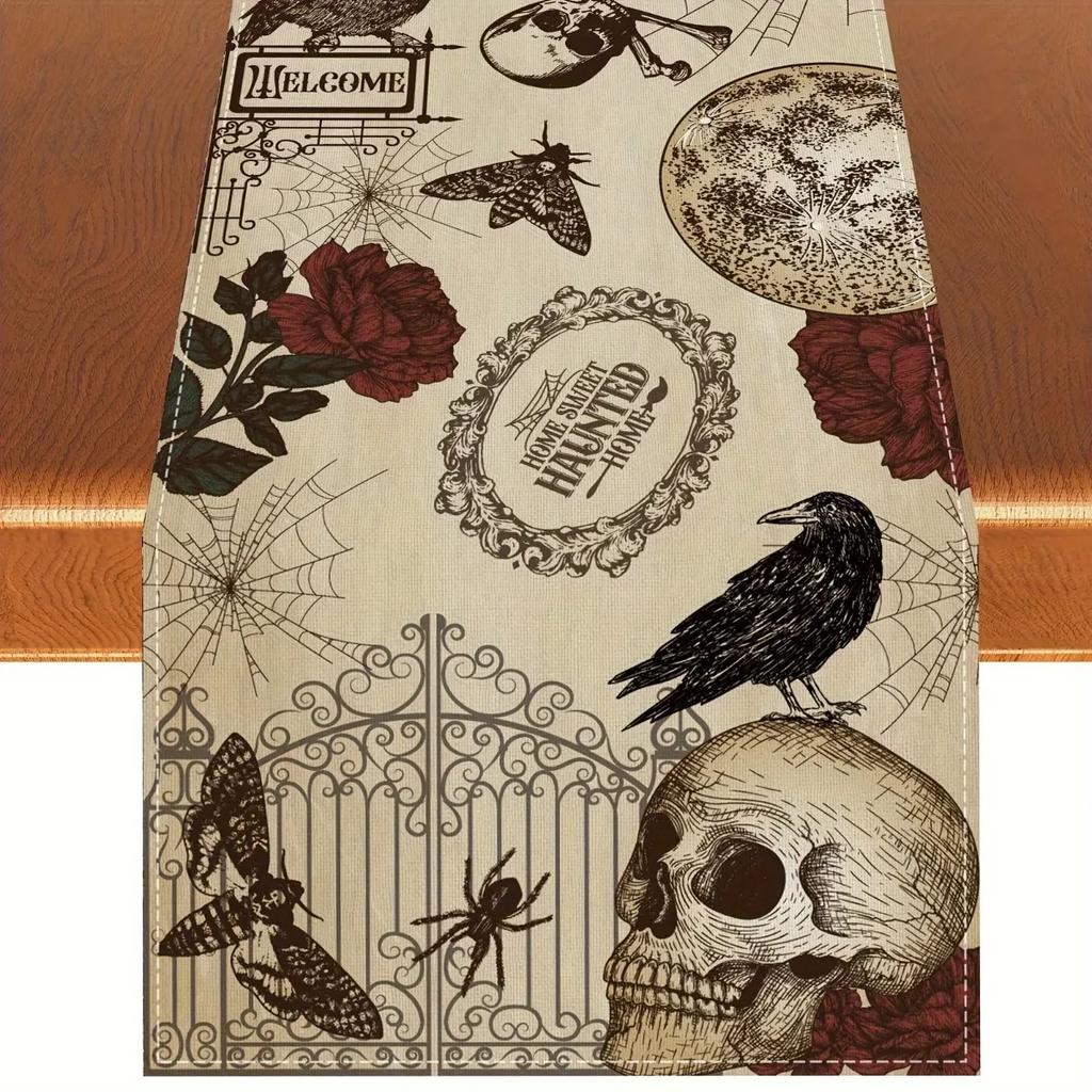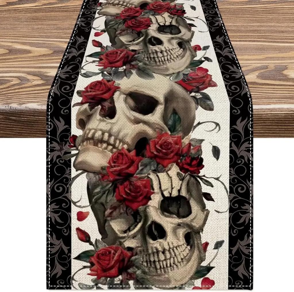 Хэллоуин Розы Черепа Льняные Дорожки для Стола Мексика День Мертвых Фестивали Декор Для Вечеринки Моющийся Главная Кухня Обеденный Стол Декор