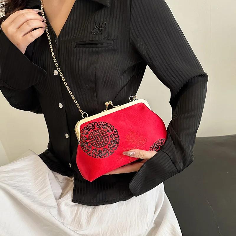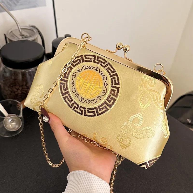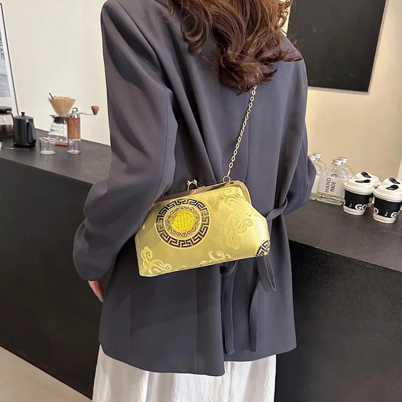 Ретро сумка через плечо для женщин с золотой вышивкой замок ракушка клипса цепочка Messenger клатч зеленые сумки через плечо