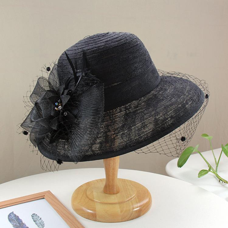 Элегантная кружевная шляпа рыбака для женщин, дышащая солнцезащитная шляпа-ведро, винтажный британский стиль с сетчатым цветочным узором