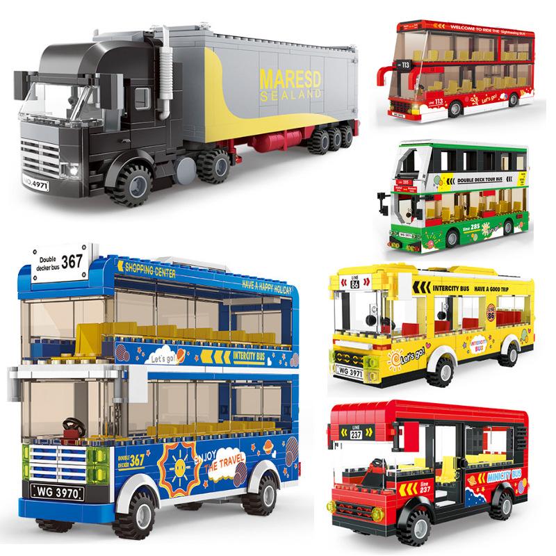 Тяжелый грузовик Автобус Грузовик Мелкие частицы Детский автомобиль Строительные блоки Сборка Интеллектуальные игрушки