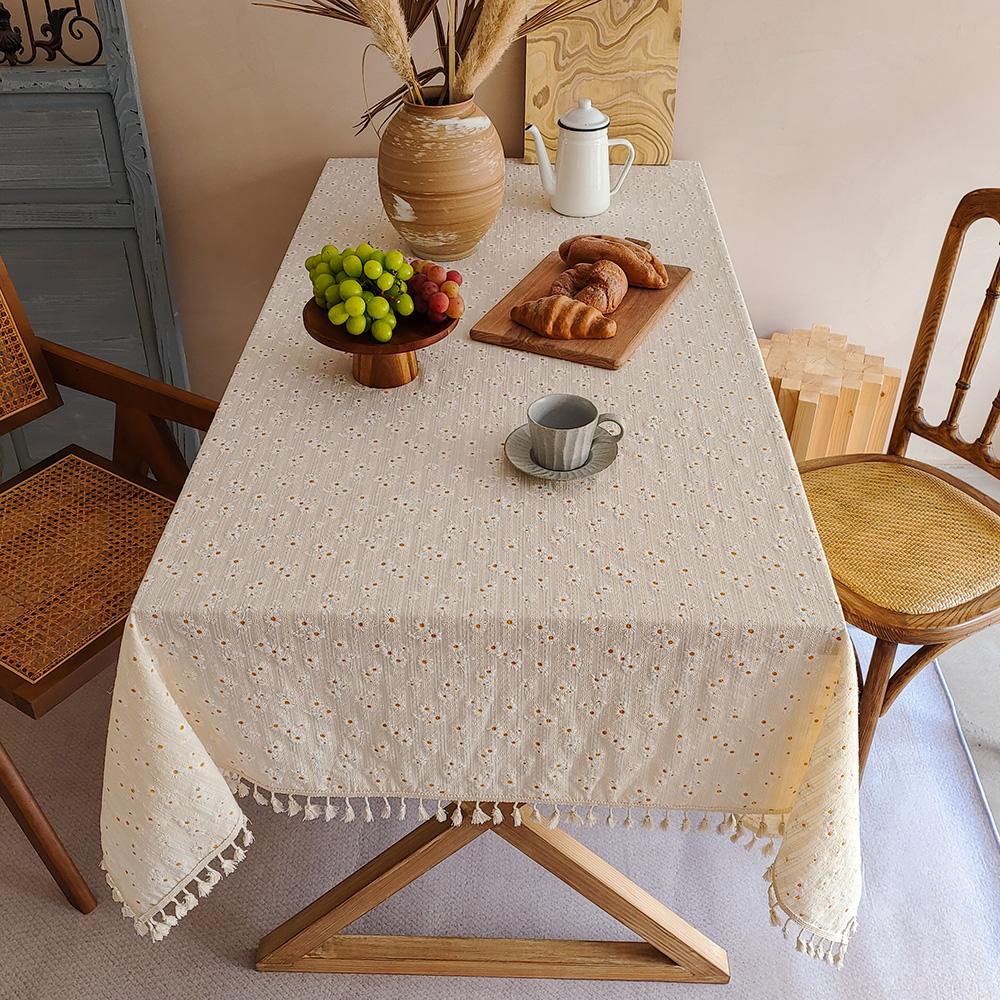 1 шт., скатерть с кисточками, небольшая, в стиле кантри, украшение стола, прямоугольная, с рисунком в виде ромашек, пылезащитная скатерть с