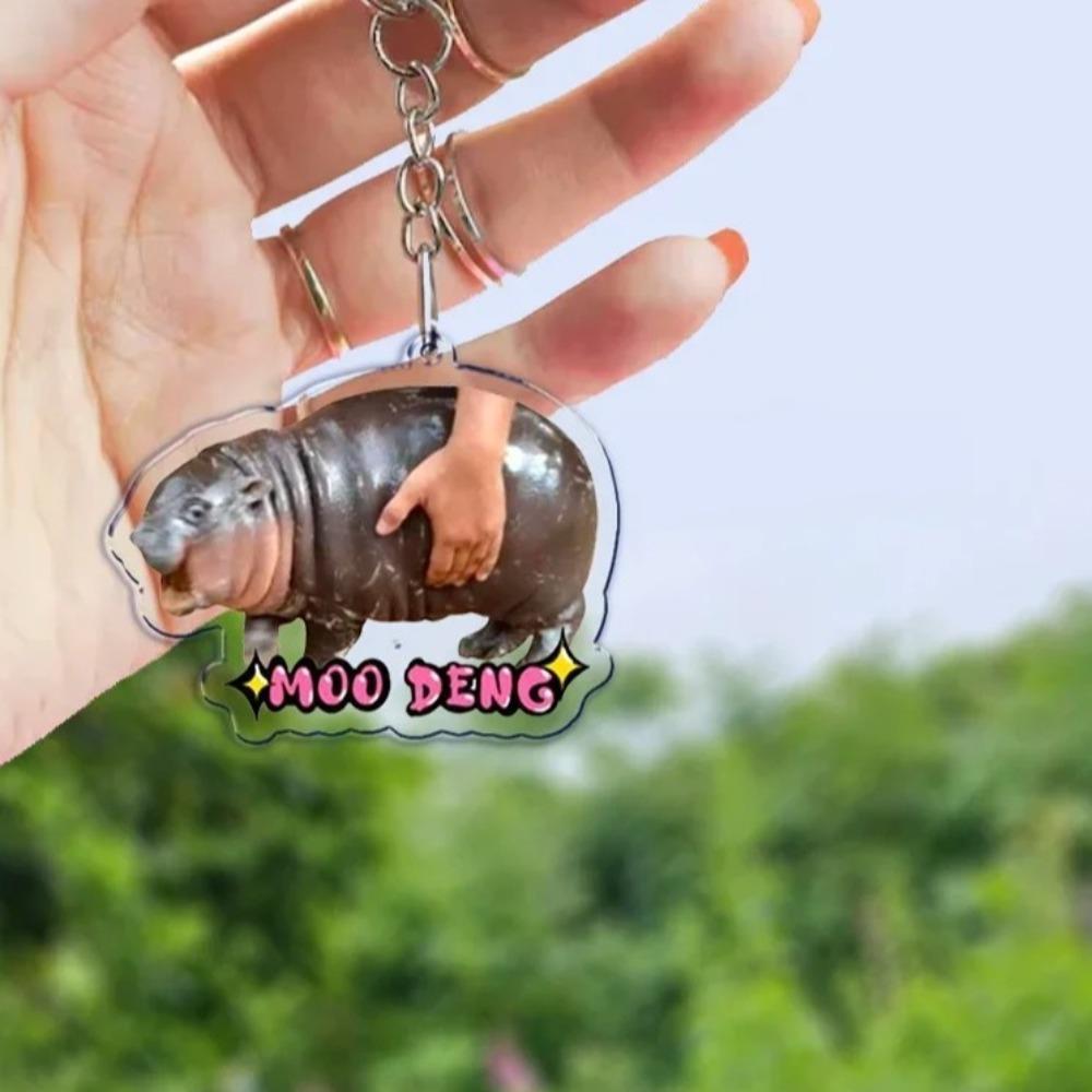 Милый брелок-подвеска с изображением мультяшного животного, акриловый брелок для ключей в виде новорожденного бегемота, пара