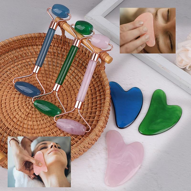 2 шт. Массажер для лица и шеи, роликовый резиновый скребок для красоты, двухсторонняя массажная палочка для разблокировки и расслабления, не розовый нефрит