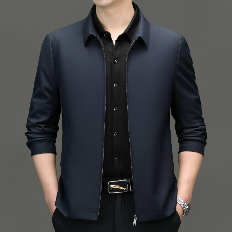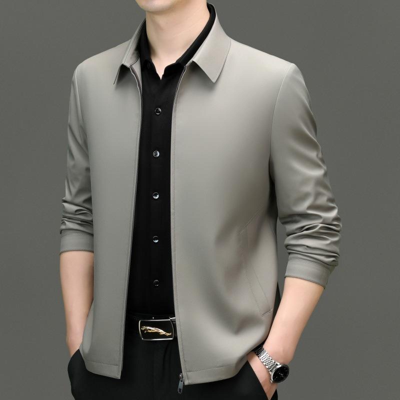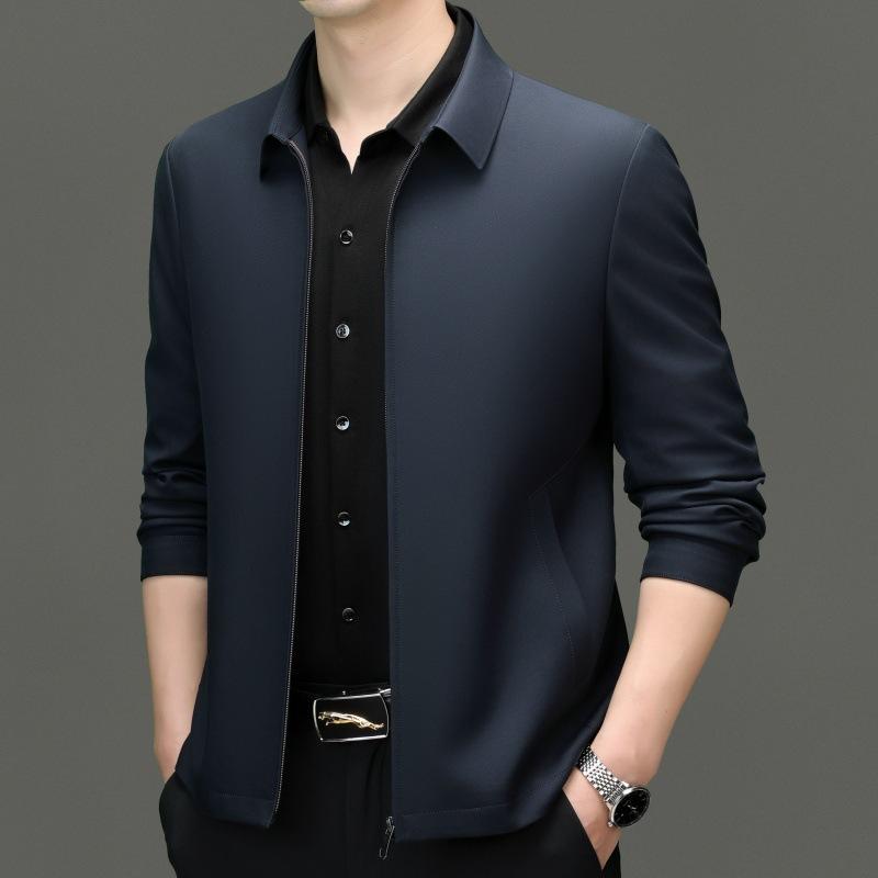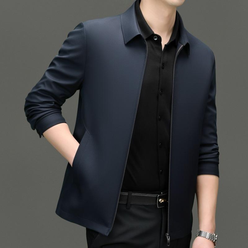 Мужская куртка из шелка тутового шелкопряда, весна и осень, новая мужская куртка среднего возраста с лацканами, универсальный топ для папы