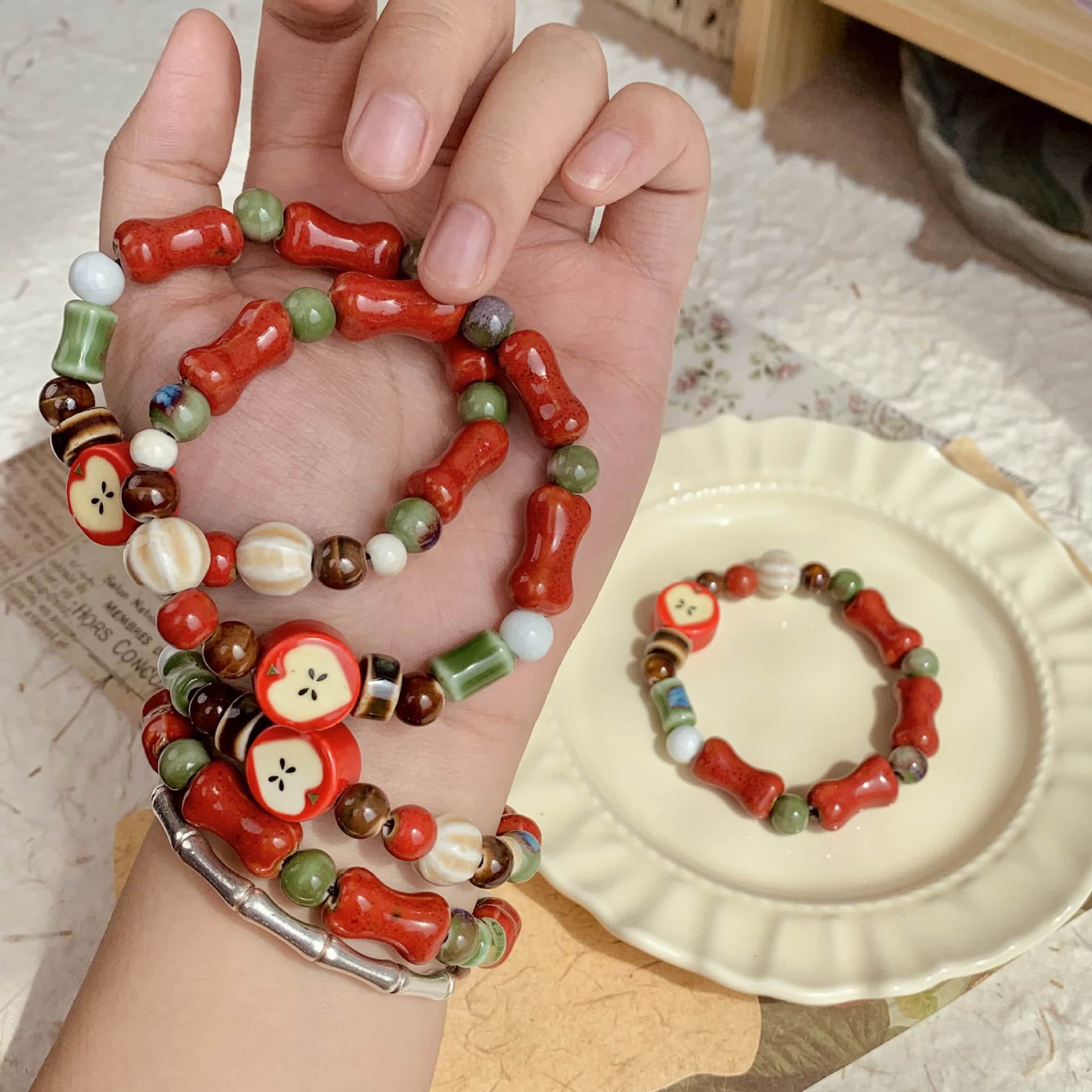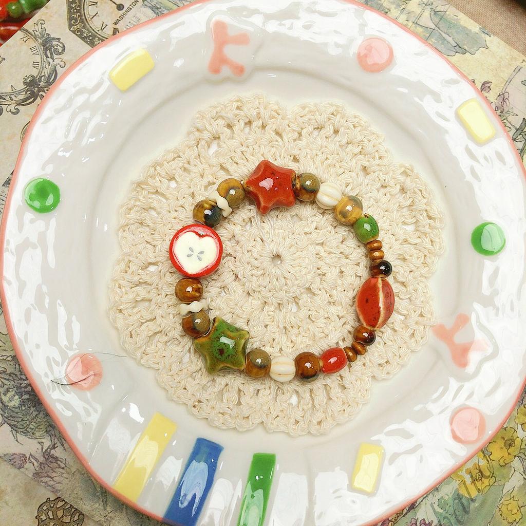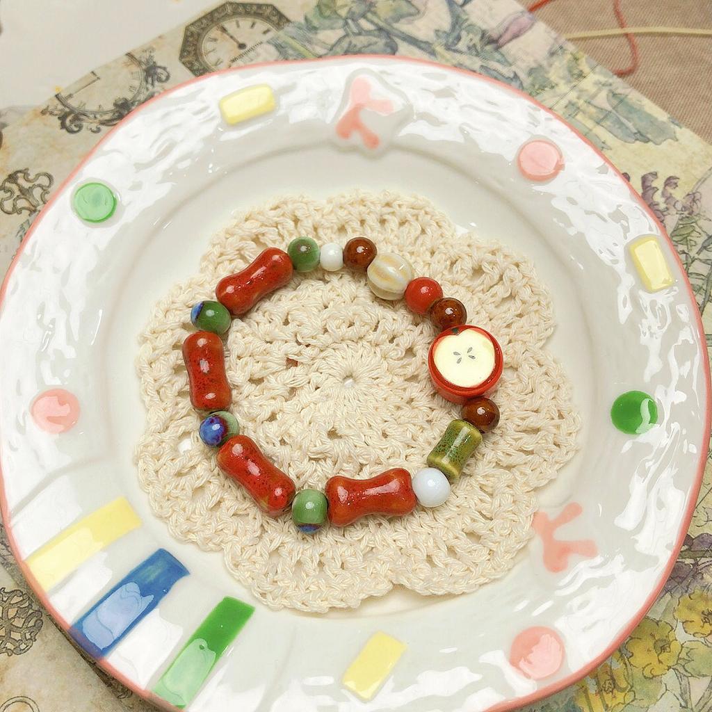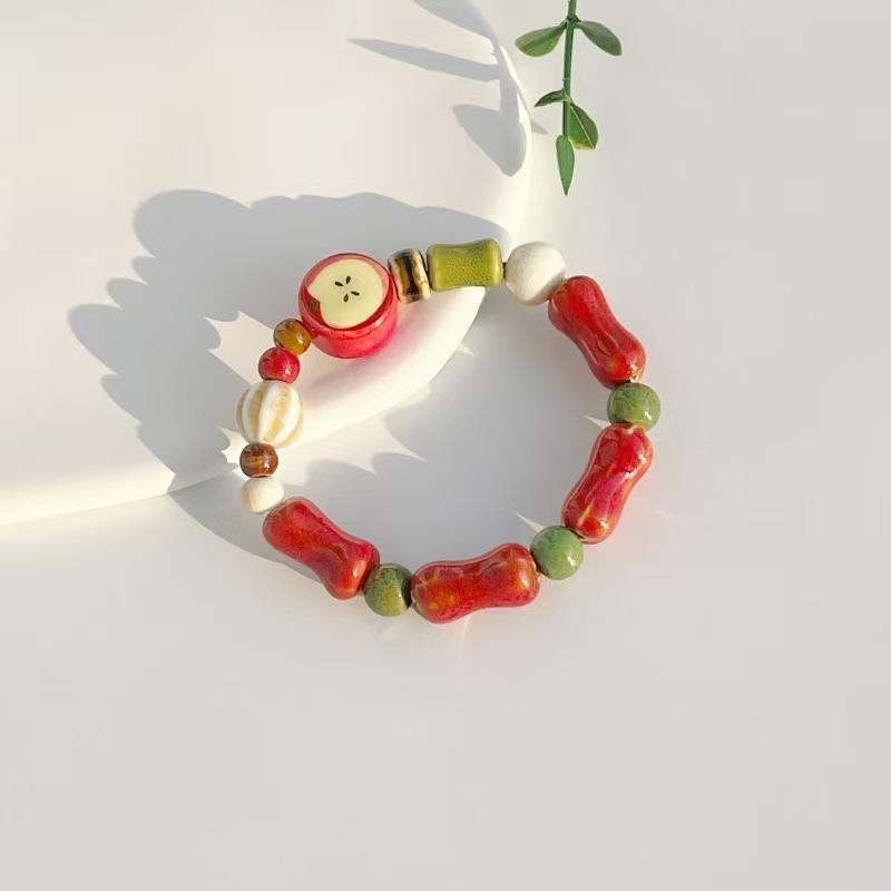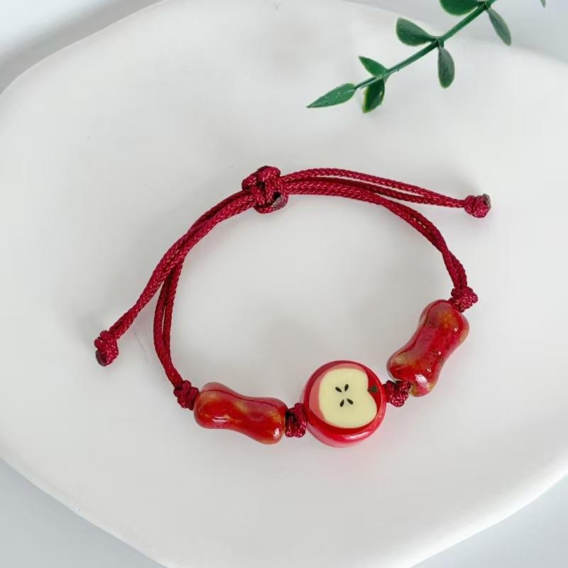 Керамический браслет ручной работы Apple, регулируемый плетеный шнур, милые украшения в мультяшном стиле для подарков