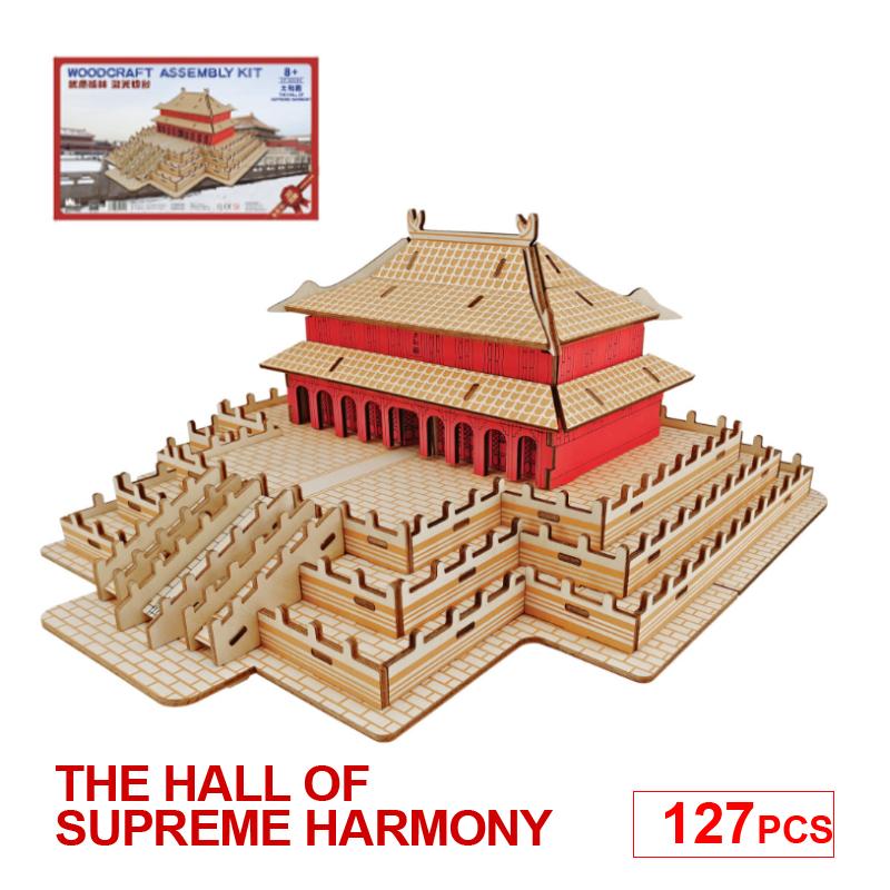 DIY Модель игрушки 3D Деревянный Пазл Зал Высшей Гармонии Деревянные Наборы Головоломка Игра Сборка Игрушки Подарок для Детей Взрослых P51