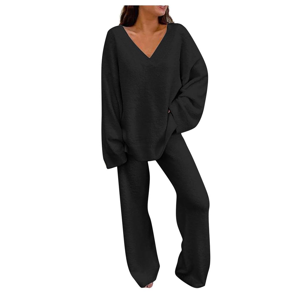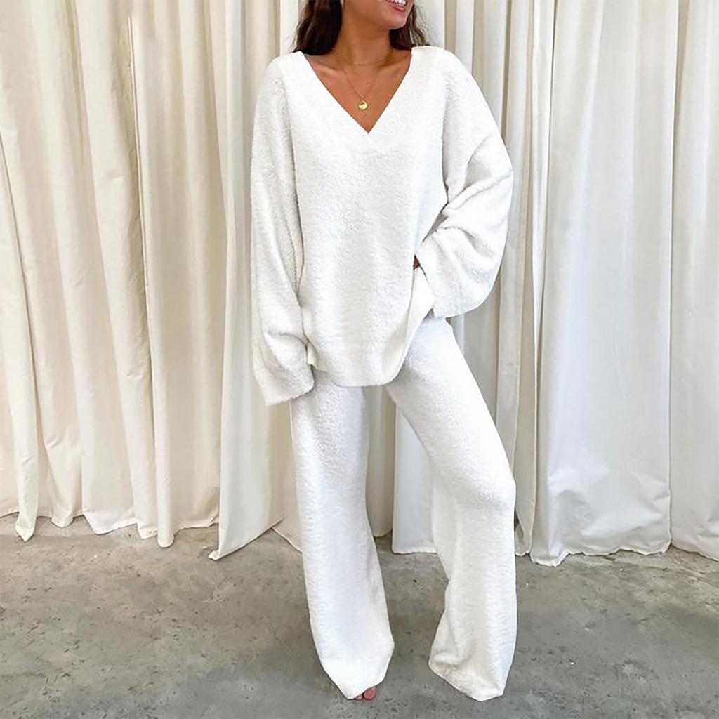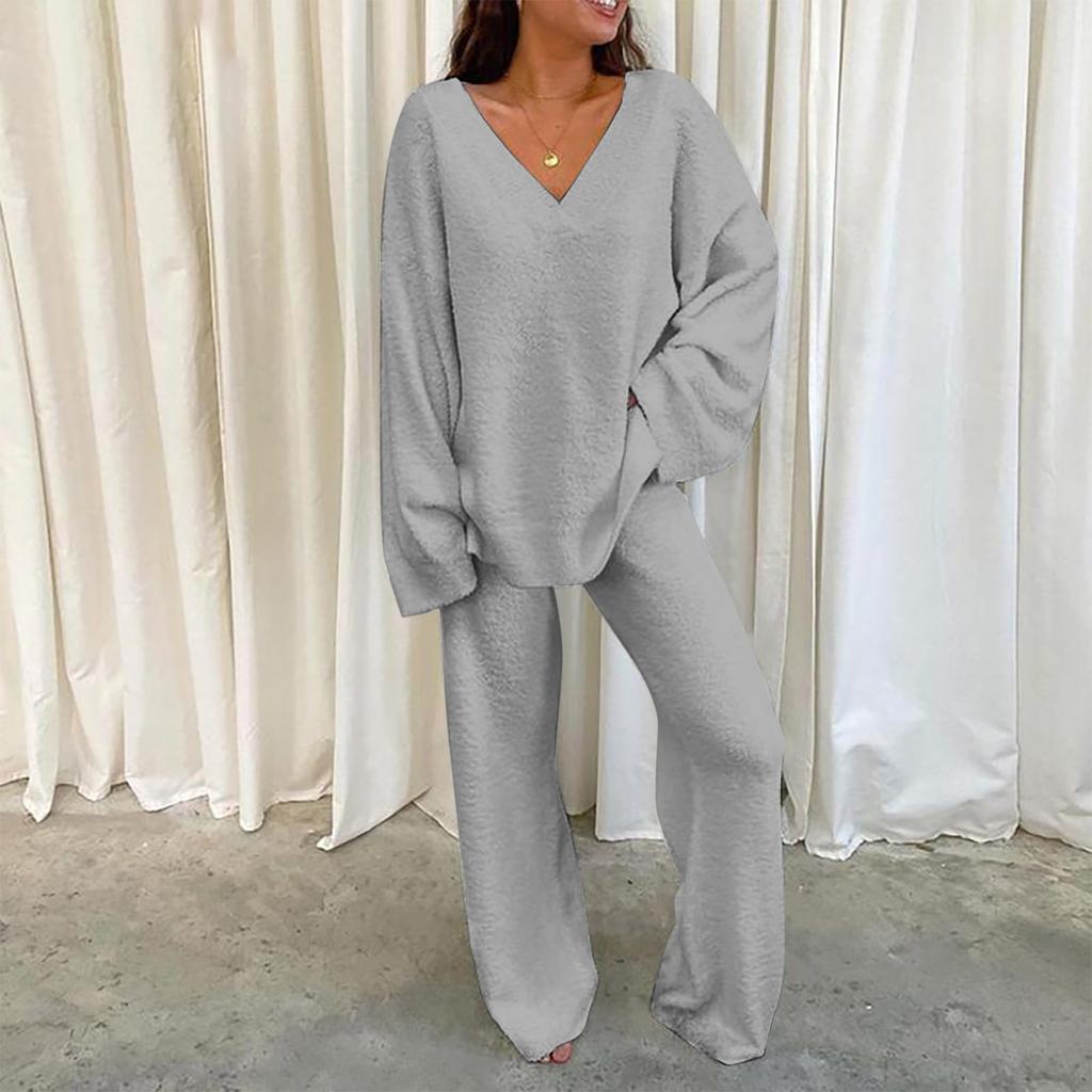 Женский пушистый комплект, повседневная одежда для дома, двусторонний флисовый комплект из двух предметов
