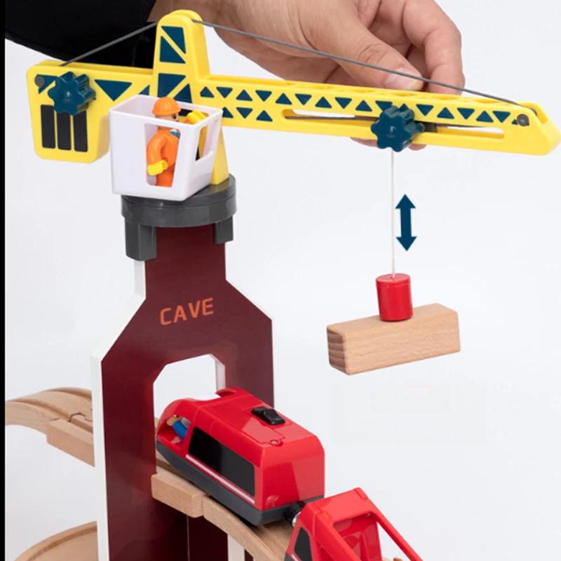 Игрушечные деревянные треки, аксессуары для волшебной железнодорожной машины, забавная подвесная игрушка-башенный кран, инженерное строительство, подарок для мальчика X34